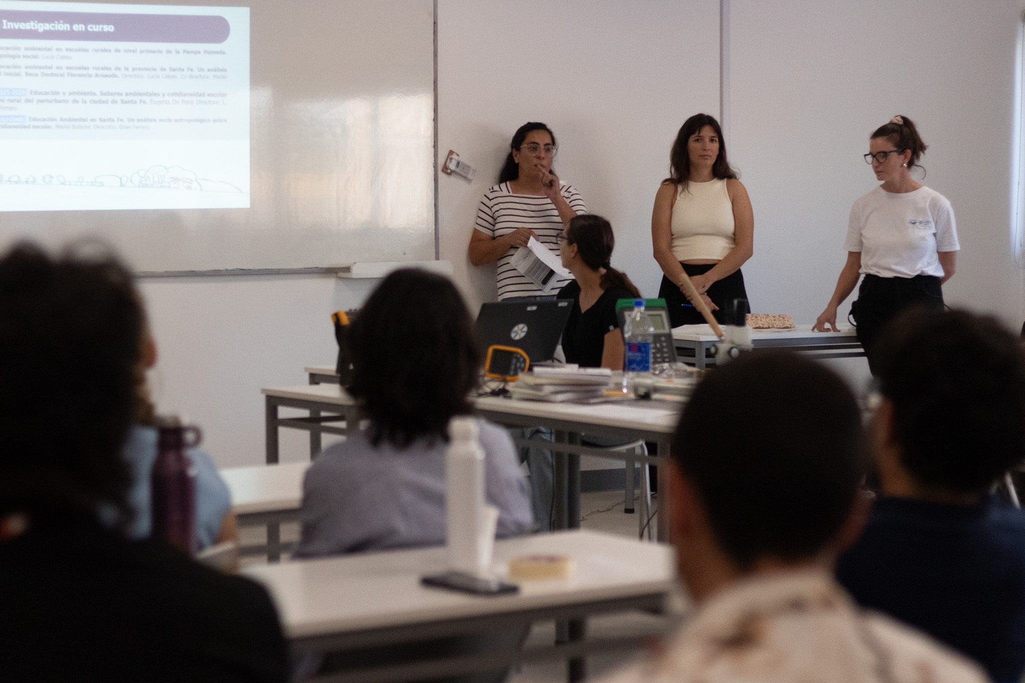 - Educación, Nuevas Tecnologías de la Comunicación y Territorios, orientada al análisis de procesos sociales, culturales y educativos, así como en las transformaciones que atraviesan las comunidades urbanas y rurales de la región. Los grupos de trabajo presentaron investigaciones sobre Salud, cuidados y derechos, con énfasis en el acceso a los derechos reproductivos y la salud comunitaria; Estudios del trabajo y sus transformaciones, abordando procesos de digitalización, nuevas experiencias laborales y estrategias para la sostenibilidad de la vida; Territorio, ambiente y sociedad, centrados en la educación ambiental, los conflictos socioambientales y las políticas de desarrollo rural; Migraciones, movilidades y desigualdad, con foco en movimientos contemporáneos, ciudades intermedias y el derecho a la ciudad; y Comunicación, políticas y prácticas socio-comunitarias, incluyendo medios tradicionales y digitales. Estos proyectos se desarrollan en respuesta a demandas concretas de la región, generando conocimiento relevante para comprender y atender los desafíos sociales, culturales y educativos de las ciudades intermedias como Rafaela.